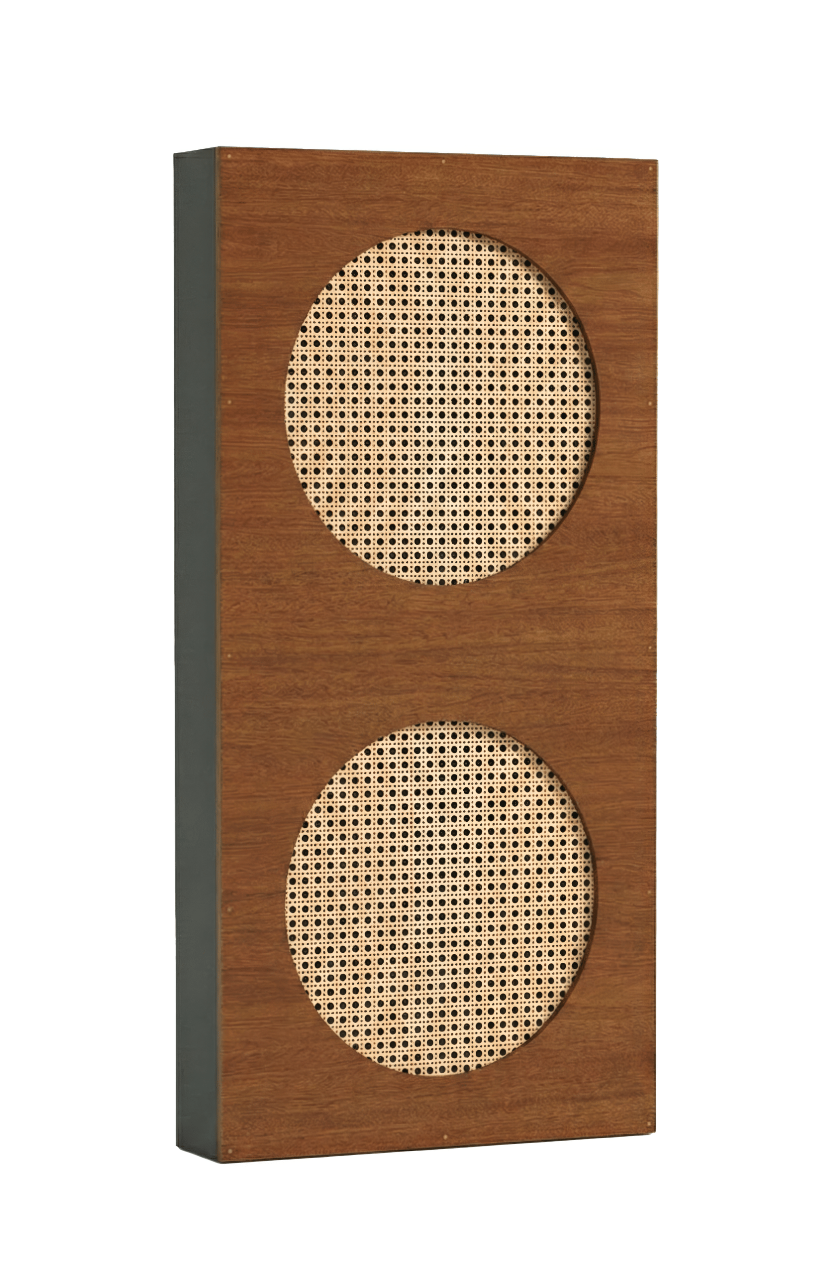 AbFuser Rattan Domino to hybrydowy panel akustyczny łączący szerokopasmową absorpcję z dyfuzją dźwięku — z naturalnym rattanem na froncie. Plecionka rattanowa w wersji Domino (wyraźniejsze oka, geometryczny rytm) nadaje mu ciepły charakter kojarzący się z estetyką boho i retro-tropikalnym designem lat 60. i 70. Dostępny w dwóch wykończeniach kolorystycznych — Brown i Venge — oraz dwóch grubościach.