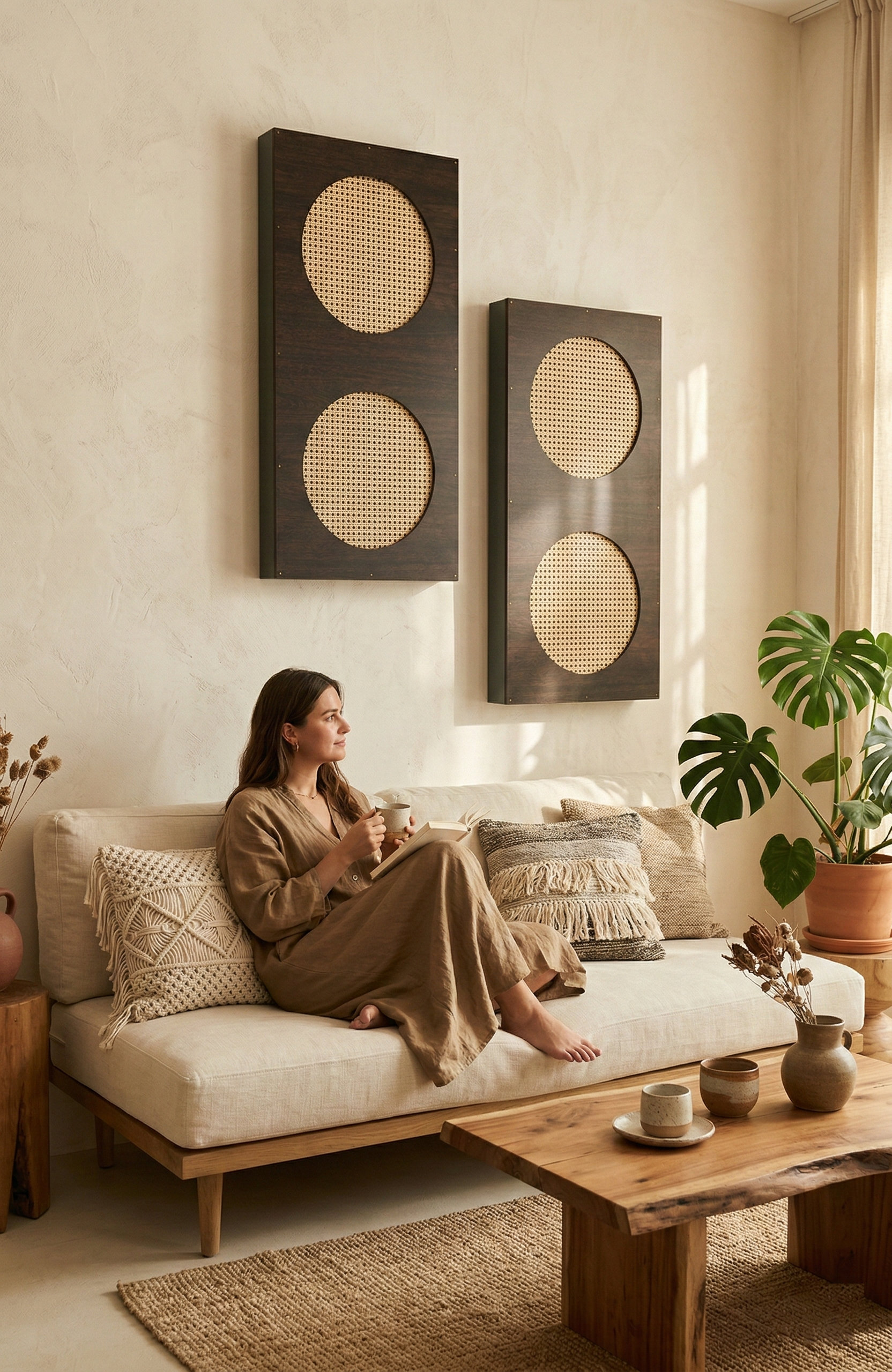 Rattan od lat 60. i 70. jest symbolem stylu boho, mid-century modern i tropikalnego designu. AbFuser Rattan wpisuje się w ten nurt — panel, który wygląda jak celowy element wystroju, nie jak akcesorium techniczne.