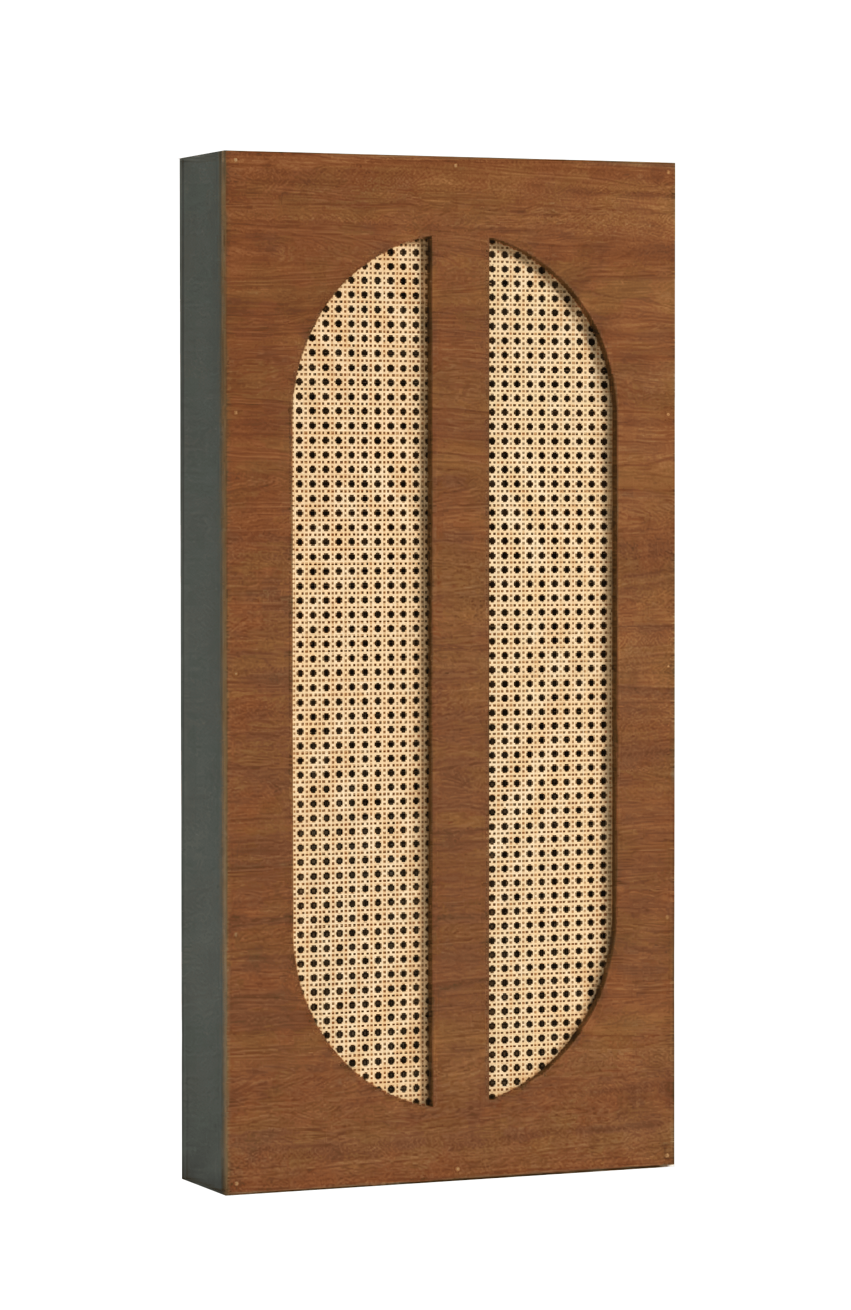 AbFuser Rattan Radio to hybrydowy panel akustyczny łączący szerokopasmową absorpcję z dyfuzją dźwięku — z naturalnym rattanem na froncie. Plecionka rattanowa w wersji Radio (delikatniejszy, subtelny splot nawiązujący do klasycznych rattanowych obudów odbiorników radiowych) nadaje mu ciepły charakter kojarzący się z estetyką boho i retro-tropikalnym designem lat 60. i 70. Dostępny w dwóch wykończeniach kolorystycznych — Brown i Venge — oraz dwóch grubościach.