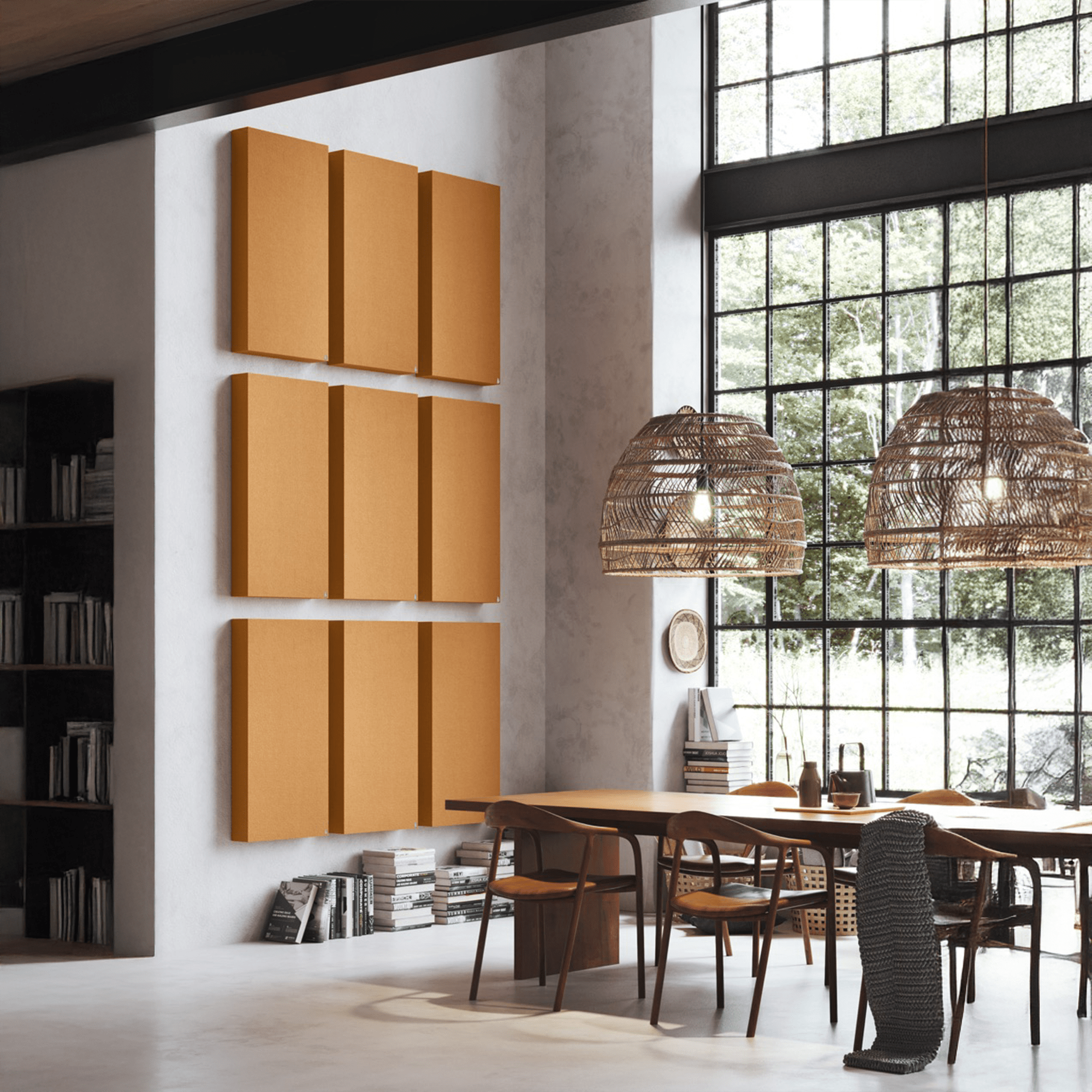 Nasze absorbery wykonane są z wysokiej jakości materiałów. Do wykonania głównych elementów konstrukcyjnych wykorzystaliśmy solidną płytę meblową oraz płytę HDF. Całość dopełniona została wysokiej jakości wełną Isover PT80 oraz tkaniną akustyczną.