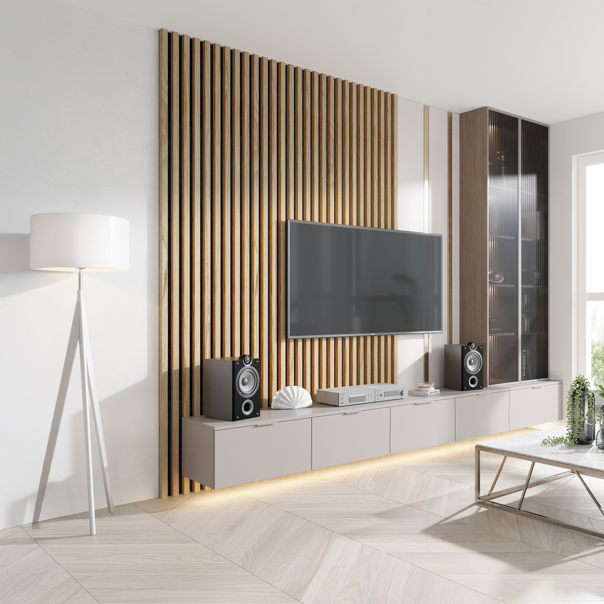 Akustyczne lamele ścienne AkuWall to designerska seria paneli akustycznych dostępna w dwóch wariantach: klasyczne lamele z naturalnego dębowego forniru na filcu oraz nowoczesne lamele w pełni filcowe AkuWall Felt. Oba rozwiązania wykorzystują wysokiej jakości filc akustyczny o grubości 12 mm pochodzący z recyklingu, który skutecznie pochłania dźwięk i eliminuje niepożądane echo, tworząc spektakularny efekt 3D na ścianie lub suficie. Drewniane lamele oferują ciepły, naturalny charakter, podczas gdy wersja filcowa zapewnia minimalistyczny, współczesny design. Dostępne w szerokiej palecie kolorów, od naturalnych odcieni drewna po intensywne barwy filcu, harmonijnie wpisują się w różnorodne aranżacje wnętrz. Idealne do sal konferencyjnych, biur, hoteli, studiów nagraniowych oraz wnętrz domowych wymagających poprawy akustyki przy zachowaniu wyjątkowego charakteru wizualnego.
