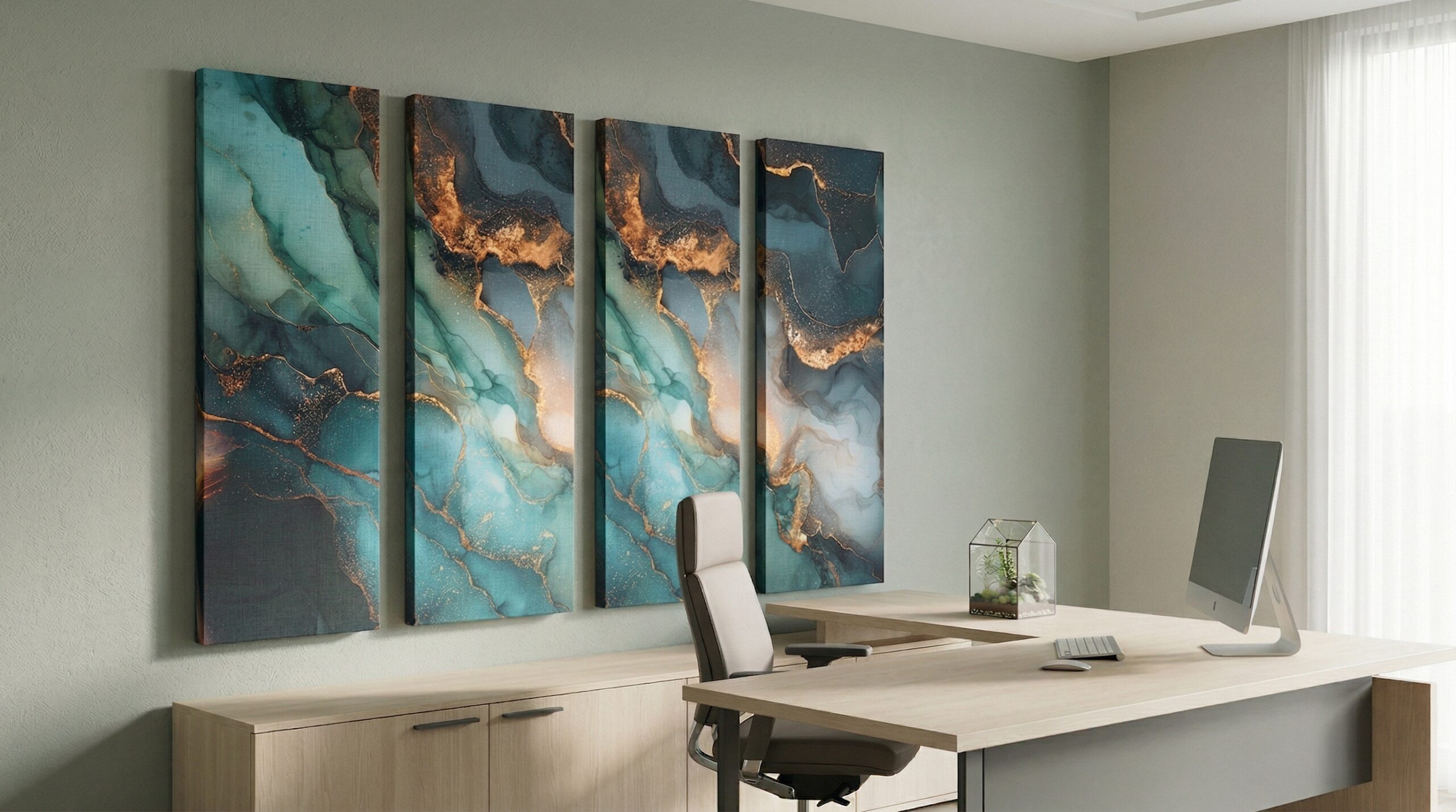 Obraz Akustyczny to połączenie sztuki z funkcjonalnością – ozdoba, która aktywnie poprawia komfort akustyczny. Idealnie komponuje się z każdym stylem wnętrza.