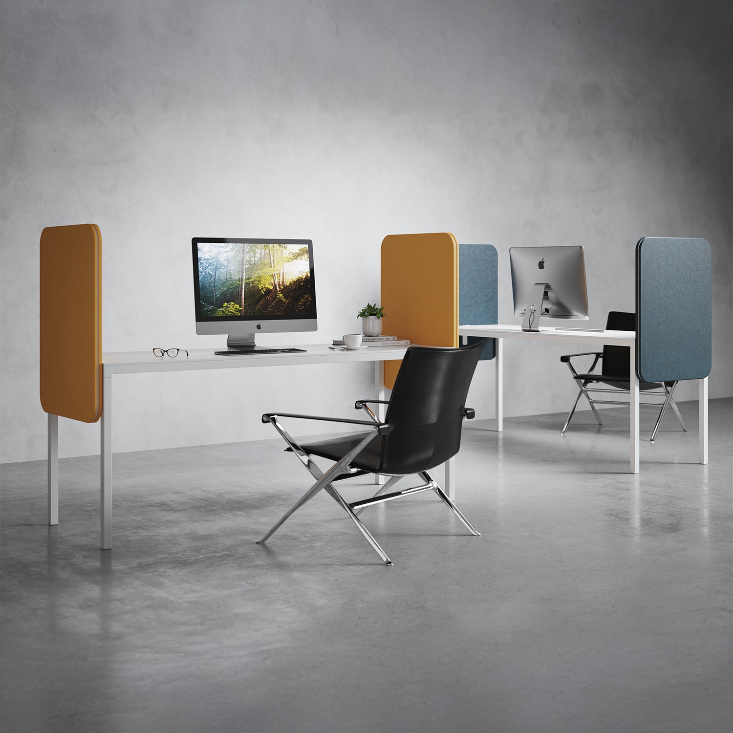 Pojedynczy panel o wymiarach 60×80 cm montowany z boku biurka. Tworzy dyskretną barierę między stanowiskami, zapewniając prywatność bez izolowania pracowników.