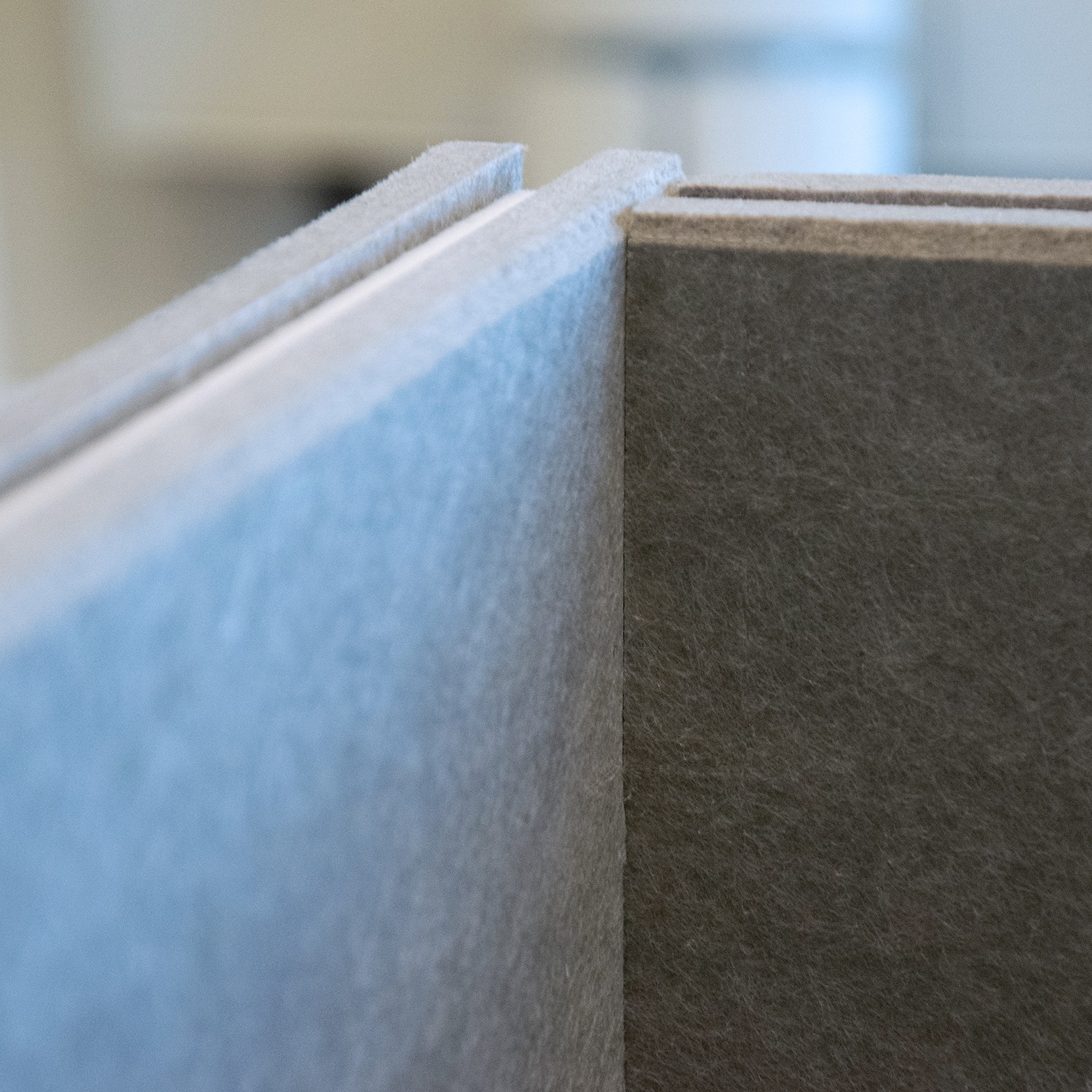 Wybierz kolor filcu oraz środkowej pianki Basotect® z pełnej palety barw. Stwórz ekran idealnie dopasowany do wystroju wnętrza – od subtelnych pasteli po odważne akcenty kolorystyczne.